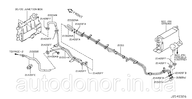 Довгі патрубки охолодження від конвертора DC/DC зарядний перетворювача в багажнику автомобіля Nissan (Ніссан Ліф).