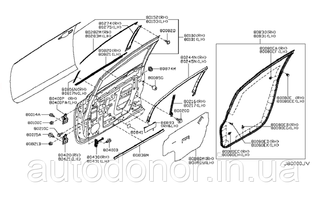 У нашому магазині Ви зможете придбати перелік оригінальних запчастин стосується дверей електромобіля Ніссан Ліф. Всі запчастини в наявності і на всі пункти з переліку поширюється гарантія. Телефонуйте, пишіть, цікавтеся, будемо раді допомогти.