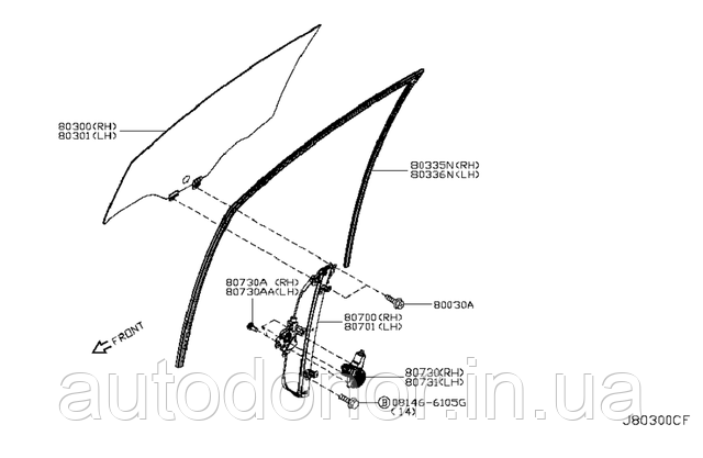 Двері передня вікно Ніссан Ліф (Nissan Leaf)