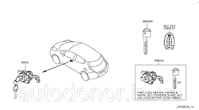 Ключ водійських дверей і центрального замку Ніссан Ліф (Nissan Leaf)