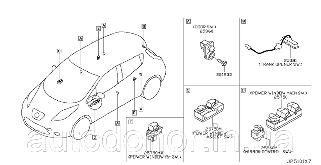 Кнопки, датчики та перемикачі дверей Nissan (Ніссан Ліф).